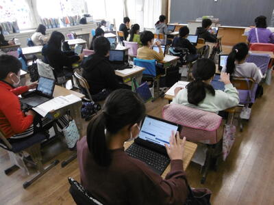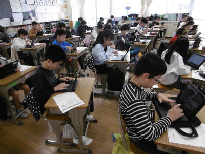 12月11~14日の4日間で、3~6年生を対象に、千葉県教育員会の学力向上施策の一つである「ちばっ子学びの未来デザインシート」を実施します。これは、各教科で学んだ内容が日常生活で生かすことができる力となっているかを測るため、千葉県が独自に作成している問題です。そして実施方法は、CBT(computer based test)方式です。子どもたちは、紙と鉛筆の代わりに、一人一台端末(タブレット)を使いながら、一生懸命に問題に取り組んでいます。