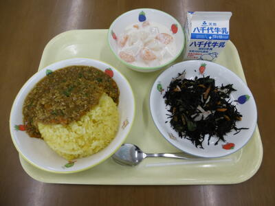 今年度3回目(最終回)の試食会は、3年生の保護者の皆さんとおやじの会の皆さんです。献立は、子どもたちに一番人気のキーマカレーをはじめ、ひじきのマリネ、フルーツヨーグルト、牛乳です。ご参加いただきました保護者の皆様には、子どもたちが毎日食べている給食が、どのようにして提供されているか、また、食に関する教育がどのように展開されているか、ご理解を深めていただけたことと思います。今後も、「安全・安心な給食」を実施していく中で、子どもたちの心身の健やかな成長を支援してまいります。アンケートへのご協力、ありがとうございました。「とてもおいしかった!」との感想をたくさんお寄せいただきました。また、PTA本部役員の皆様には、ご多用の中、配膳準備等ご協力を賜りまして、ありがとうございました。なお、今年度は、1年生保護者に加え、コロナ禍で実施できなかった3、4年生保護者の皆様にも、試食会にご参加いただきました。