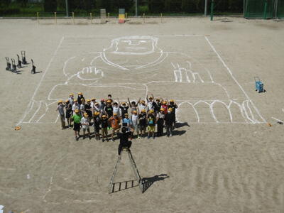 校庭に「奈良の大仏」が出現!6年生が、社会科の学習で奈良の大仏を実寸大に再現しました。座高は約15m、顔の長さは約4m、銅座の高さは約4m!…「で、でかい!」子どもたちは、その大きさを改めて実感していました。ちなみに、正式な名前は「盧舎那仏(るしゃなぶつ)」と言い、重量は約250tあるそうです。