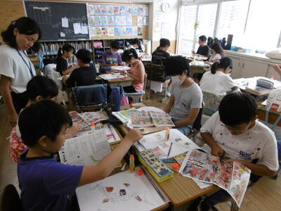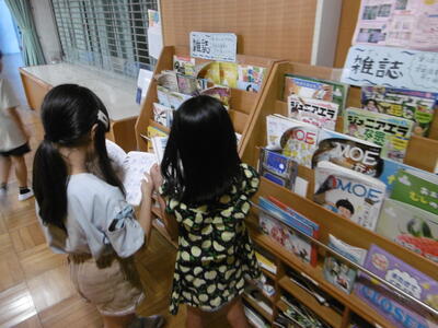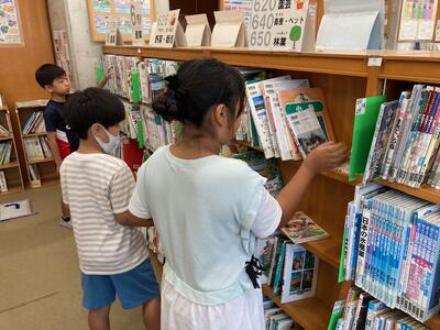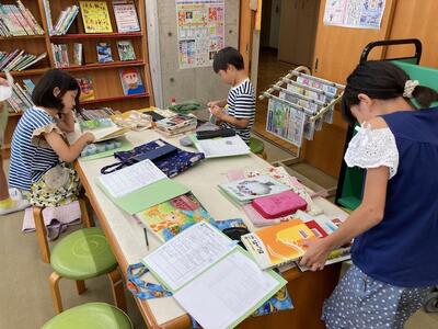 もうすぐ、子どもたちが楽しみにしている夏休み!今週から学校図書館の本の貸し出しが始まりました。普段は2冊しか借りられない本も夏休み期間中は、5冊まで借りることができます。子どもたちは、自分の読みたい本を本棚からじっくりと選んでいました。40日余りの長いお休みです。本の世界にたっぷりと親しんで、読書を楽しみましょう!