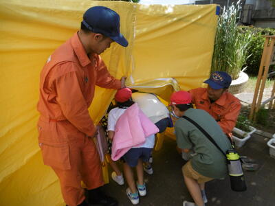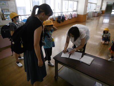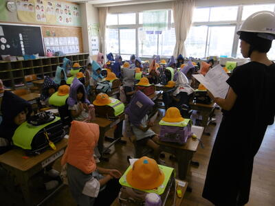 「引き渡し訓練」にご協力をいただきまして、ありがとうございました。本訓練は、大災害が発生した時に、お子様を保護者の皆様に安全に引き渡すための訓練です。今回は、地震発生後「警戒宣言」が発令されたという想定で行いましたが、悪天候や不審者等への対応として、引き渡しが必要な事態にも備えています。これから台風シーズンを迎えます。本校では「市川市非常変災時(台風、地震等)における学校等の対応について」をHPに掲載していますので、改めて、ご確認のほどお願いいたします。
