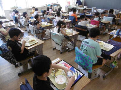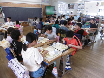 2学期の給食がスタートしました!初日の献立は、キーマカレー、みかんヨーグルト、牛乳です。久しぶりの給食に子どもたちは大喜び!大人気のキーマカレーということもあり、子どもたちのテンションは、MAXです!特に、厳しい残暑の中、スパイシーなカレーとさっぱりしたヨーグルトは、格別のおいしさ!2学期も、栄養バランスのよい、おいしい給食をモリモリ食べて、健康に過ごしましょう!※HP「おいしい給食」にて、給食の献立を毎日写真入りで紹介していますので、あわせてご覧ください。