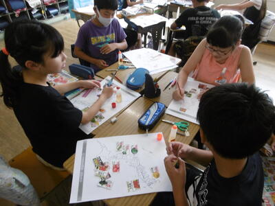 子どもたちが、スーパーマーケットのチラシを一生懸命見ています。今晩の夕食のために、お買い得な食品を探しています。…というわけではなく、チラシに掲載されているいろいろな農産物の「産地」を調べています。「このニンジンは、千葉県産だな。」「ブドウは、山梨産って書いてある。」「じゃがいもは、北海道だよ。」それぞれの農産物の「産地」が一目でわかるように、チラシから切り取った農作物の写真を日本地図の上に、どんどん貼っていきます。出来上がった地図をじっくりと見てみると…、さて、どんなことに気が付くかな?