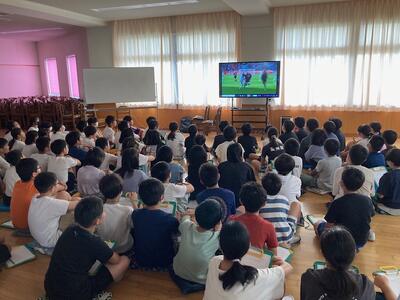 総合的な学習の時間「キャッチ・ザ・ドリーム」の学習として、元女子サッカー選手の 宮間あや さんをお招きし、6年生がお話を伺いました。宮間さんは、2011年FIFA女子ワールドカップ・ドイツ大会に、主力メンバーとして出場。チームを支える大活躍で、なでしこジャパンの優勝に大きく貢献しました。東北大震災で疲弊していた日本国民に勇気と希望を与えた、そのひたむきな姿は、今も多くの方々の記憶に残っていることと思います。また、翌年2012年のロンドン・オリンピックでは、キャプテンとしてチームをまとめ、見事銀メダルの栄誉にも輝いていらっしゃいます。、宮間さんが笑顔いっぱいで会場に入ってくると、子どもたちは、拍手喝さい!宮間さんが、時にユーモアを交えながら語る、幼少期のサッカーとの出会いから今日までのサッカー人生の歩みに、熱心に耳を傾けていました。また、オリンピックの銀メダルにも触らせていただき、そのデザイン、重さ、感触に大感激していました。