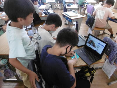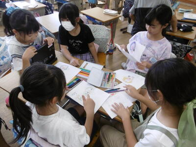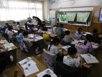 3年生が国語科の学習で「生き物ブック」作りにチャレンジしています。教科書教材「めだかの身の守り方」の発展学習として、自分が興味を持った生き物を選んで、その生態(体のつくり、食べもの、住んでいる場所、身の守り方等)について、意欲的に調べ学習を進めています。学校図書館の本を活用したり、学習用端末(タブレット)でインターネット検索をしたりしながら、必要な情報を取捨選択して、項目ごとにシートに整理しています。一人一人のシートを学級でまとめて、世界に一つのオリジナル「生き物ブック」を完成させます。出来上がりが楽しみです!