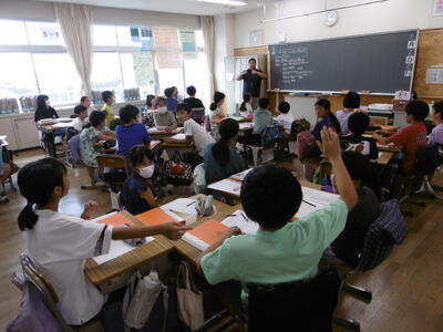 おかげさまで、今夏の水泳授業を大きな事故なく無事終了しました。今年度は天候にも恵まれ、各学年とも予定通り5回(10時間)実施することができ、5・6年生では、別途「着衣水泳」にもチャレンジしました。子どもたちは、水中じゃんけんや宝探し、波のプールや流れるプールなどで水遊びをしたり、コース別に分かれて「け伸び」や「バタ足」、クロールや平泳ぎなどの泳法を練習したりしながら、自分のめあてに向かって、安全に楽しく活動しました。記録会で泳力が伸びたことを実感している子どもたちも大勢いました。夏休み中、ご家庭でも、機会がありましたら、お子さんの成果をぜひ見てあげてください。
