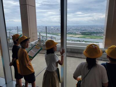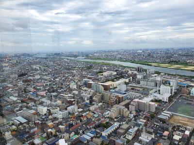 曇っているので少しだけ視界は悪いですが、市川市を広く見渡せます。3年生が使っている「わたしたちの市川」のはじめに、ここから撮った写真が掲載されています。妙典の町は見えるかな?
