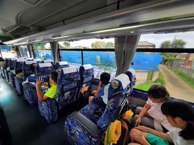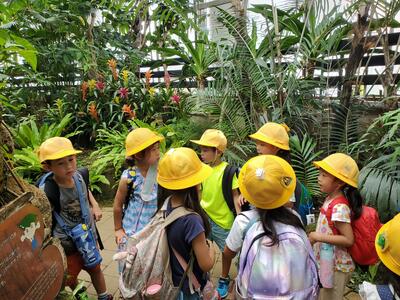 夢の島熱帯植物館を出発しました。南国気分を味わって、ちょっとトロピカルな表情をしています。夢から冷めないうちに、バスに乗って帰ります!1日よく頑張りました!