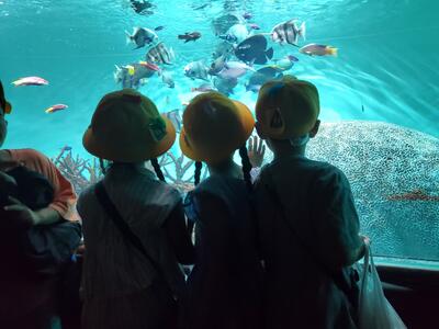 昨日の3年生の校外学習に引き続き、今日は1年生の校外学習です。あいにくのお天気が想定されるため、雨天プラン「葛西臨海水族園」「夢の島熱帯植物園」に見学に行きます。