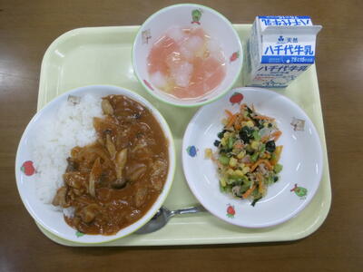 ・牛乳 ・ハヤシライス ・小松菜とツナのサラダ ・カクテルゼリー
