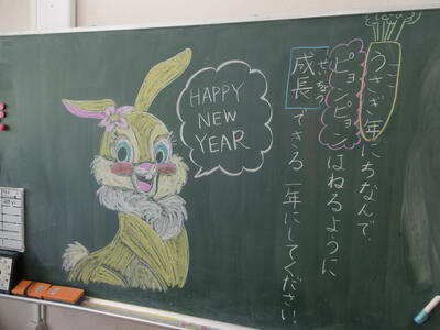 新しい年を迎え、子どもたちも心機一転、張り切っています。一日一日を大切にして、目標をもって自分らしく充実した学校生活が送れるよう、また、一人一人にとって、卯年にふさわしい「飛躍の年」となるよう、職員一同精一杯取り組んで参ります。引き続きご支援・ご協力のほど、よろしくお願い申し上げます。