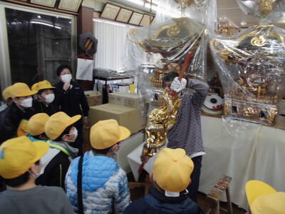 4年生では、総合的な学習の時間に地域の伝統や文化について各々のテーマごとに学習に取り組んでいます。そのなかで、神輿について学習を進めているグループは、昨年末から行徳の中台神輿製作所において神輿づくりを見学させていただきました。実際に神輿を担いだことがあるという児童は半数近くいましたが、間近で神輿づくりの様子を見たことがあるという児童はおらず、職人さんのミリ単位の技術に歓声が上がっていました。2月には実際に神輿を担がせていただける機会もあります。魅力いっぱいの地域の学習は、進めるたびに子供達にとって未知の宝箱を開けるような感覚なのかもしれません。