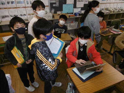 1月24日(火)、第6回校内授業研究会(今年度最終)を行いました。今回は「公開研究会」として、市内の12名の先生方にご参観いただきました。これまで、本校では、「主体的に学ぶ子の育成」を研究主題に掲げ、学習過程に応じた支援の工夫について、「生活科」や「総合的な学習の時間」を中心に、実践的な研究を積み重ねてきました。講師の先生方や参観された先生方からは、子どもたちが問題解決に向けて主体的・協働的に学んでいる姿に、高い評価をいただきました。今後も、「興味関心を持ち、見通しをもって粘り強く学習に取り組む。」「友だちの協働、地域の方々との交流、先人の考え方などを手掛かりに自分の考えを広げ、深める。」「自分の学びを振り返り、次につなげる。」…このような学びの姿を目標に、引き続き、支援の充実に努めてまいります。