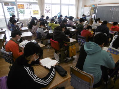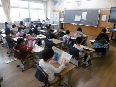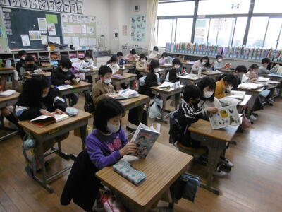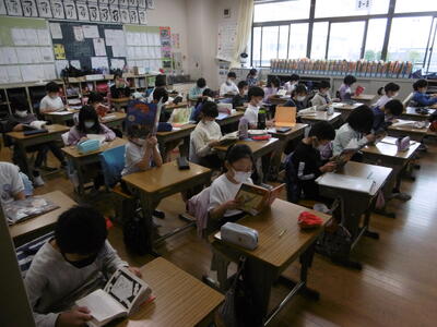 金曜日の朝の活動の時間(8:25~8:40)は、全校読書タイム。読書の意義は、今更言うまでもありませんね。子どもたちは、想像の翼をいっぱいに広げながら、自分で選んだ本を夢中で読んでいます。「確かな知と豊かな心を育む本との出会い」。子どもたちにとって素敵なひと時になることを願っています。