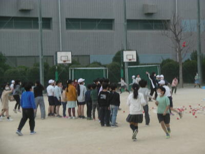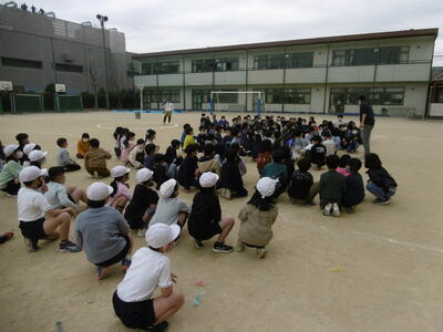 6年生が「スポーツ大会」を実施しました。「ころがしドッジボール」と「綱引き」の2種目で、クラス対抗で優勝をめざします。はあと学級の友達も交えて、子どもたちは、大はしゃぎ!校庭いっぱいに、子どもたちの楽しそうな笑顔と歓声が響き渡っていました。…こうして仲間たちと仲よく遊べるのも、あとわずか。新年を迎えると、卒業までいよいよラストスパートです!
