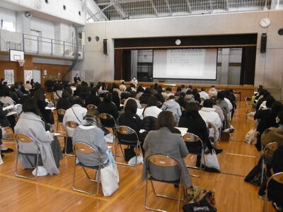 2月7日(火)、来年度入学する新入生の保護者の皆様を対象に説明会を実施しました。入学までの諸準備や保健室、給食室からのお願い等について確認をさせていただきました。また、PTA会長さんからは、PTA活動のあらましについてお話がありました。本校HPに「新入生のページ」を掲載しましたので、どうぞご参照ください。なお、ご不明な点などございましたら、遠慮なく本校、教頭までご連絡ください。職員一同、お子様のご入学を楽しみにお待ちしております。