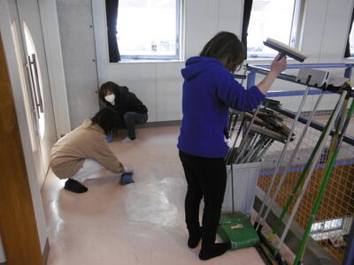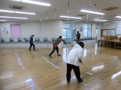 卒業式に向けて、2月9日(金)放課後、教職員総出で特別棟のワックスがけを行いました。もうすぐ妙典小を巣立っていく6年生、一人一人の顔を思い浮かべながら、教職員の腕にもいっそう力が入っていました。