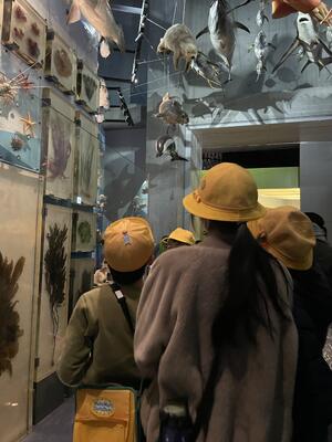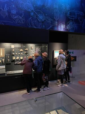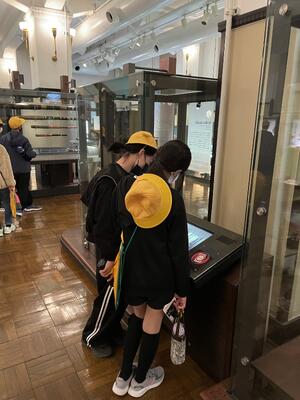 上野の国立科学博物館を見学しています。たくさんの展示物をグループで計画的にまわっています。