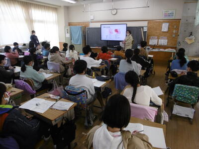 5年生が助産師の鎌田艶子さんをゲストティーチャーにお迎えして、理科「動物の誕生」において、「命の授業」を実施しました。鎌田さんには、先日も2年生の「生活科」において、「赤ちゃんが生まれてくるまでの様子」をお話ししていただきましたが、5年生では、生命誕生の仕組みや成長の様子について、より詳しく学びました。「命は受精卵として発生し母体内で少しずつ成長していく…。」子どもどもたちは、助産師さんの説明にしっかりと耳を傾けていました。一人一人が、生命の神秘性、連続性、独自性を実感しながら、改めて命の尊さについて考えることができました。
