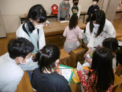 6年生が、総合的な学習の時間に取り組んできた「防災」について、全校を交えての「防災体験会」を企画・開催しました。「災害から命を守るにはどうしたらよいのか」をテーマに、意欲的に探究活動に取り組んできた子どもたち。これまでの活動を通して「わかったこと」を、1~5年生に、体験、実演、実物展示、自作動画、クイズ等の創意工夫をしながら、わかりやすくかつ楽しく伝えていました。「防災バックの中身」「備蓄品として備えておくもの」「避難所や避難場所の違い」「妙典地区の防災マップ」「災害時の新聞紙や風呂敷の活用方法」「家具の転倒防止や停電時の対応」など、防災に関する様々な事柄に下級生も興味津々!各コーナーを熱心に巡っていました。もうすぐ、卒業する6年生。1年生を優しくエスコートしながら、語りかけるように話をする姿がとても素敵でした。6年生の保護者の皆様、ご参観いただきまして、ありがとうございました。