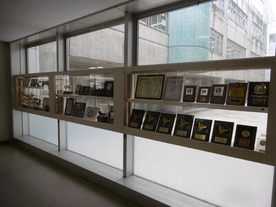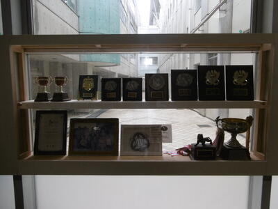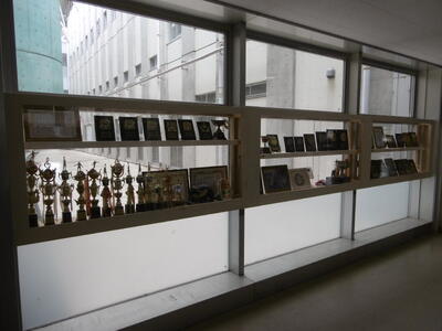 校舎1階、教室棟と特別棟の連絡通路のスペースに、真新しい「賞品ケース」が完成!用務員の中村さんが、DIYの卓越したスキルを発揮して、手づくりの賞品ケース(陳列棚)を製作してくださいました。ケースの中には、これまでの各種スポーツ大会などで、妙典小の先輩たちが獲得してきた、トロフィー、盾、賞状などが、整然と並んでいます。まさに、子どもたちの栄光の軌跡!今まで、適当な置場所が無く、埃等が付きやすかったのですが、これなら安心ですね。ケースの前を通る子どもたちは、輝かしい賞品の数々に思わず見入っていました。保護者の皆様も、来校された際には、ぜひ、ご覧ください。