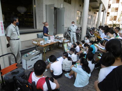 6年生では、総合的な学習の時間に「防災」をテーマに探究活動をしています。災害の発生状況や被害の実態を調査したり、実際の避難所の生活や市の防災体制について調べたりしながら、「災害に強い妙典」のまちづくりについて、考えています。先日は、探究活動の一つとして、子どもたちが、市川市地域防災課に来校を依頼し、職員の皆さんから地域の防災体制などについて詳しく教えていただきました。子どもたちは、「自助、共助、公助」の意味や市のハザードマップなどについて説明を聞いたり、実際に学校の防災倉庫の中を見学し、備蓄品やその使用方法などについて質問したりしながら、意欲的に調べ学習を進めていました。