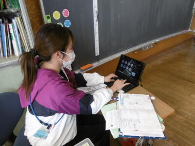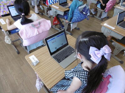 学校では、「GIGAスクール」推進の一環として、一人一台の学習用端末(タブレット)を効果的に活用した授業づくりを進めています。先日は、1・2年生がタブレットの中に入ってる計算ドリルソフトを使って、たし算・ひき算の問題にチャレンジしました。はじめこそ、操作方法にやや戸惑っていましたが、担任の先生やICT支援員の先生に教わりながらやり方をすぐに覚えていました。慣れてくると、どんどん問題を解いて自分で答え合わせをし、間違えた問題はもう一度やり直しながら、一人一人が自分のペースで、楽しく学習を進めました。