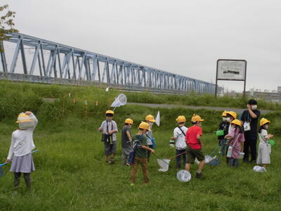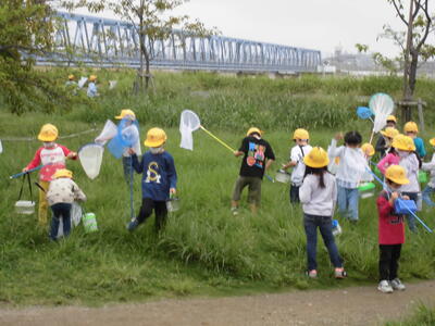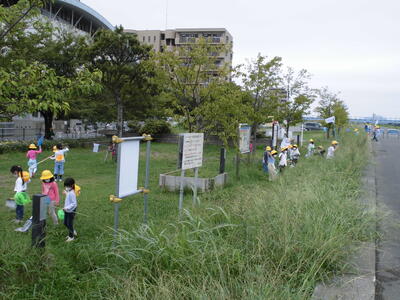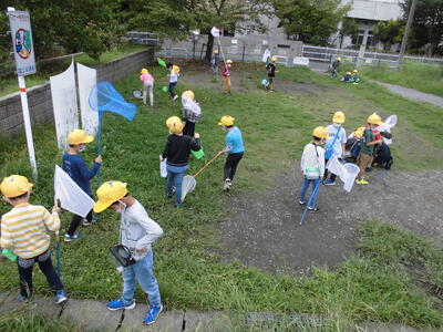 1年生が生活科の学習で、虫取りにチャレンジしました。河川敷に出かけた子どもたちはバッタやチョウ、トンボやカマキリなどを見つけては、大喜び!河川敷や虫の様子が春の頃とは違うことなども実感しながら、友達と一緒に夢中になって活動していました。身近な自然とのふれあいという具体的活動や体験を通して、生き物の様子や成長に気付くとともに、生き物への親しみを持ち、大切にしようとする気持ちを育てていきたいです。