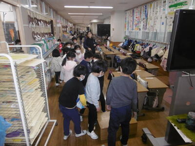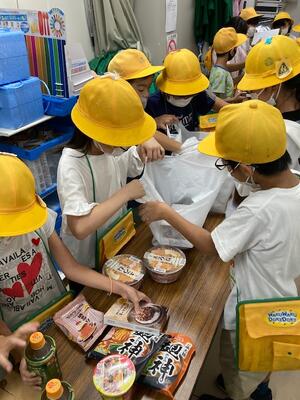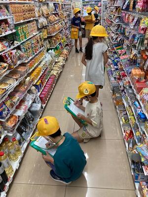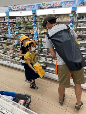 3年生が、社会科学習で学校近くのコンビニエンス・ストアの見学に行きました。地域の販売の仕事について、販売に携わっている人々の仕事の様子や工夫について学んでいます。子どもたちは、店長さんの説明を聞いたり、疑問に思ったことを質問したりしながら、分かったことを熱心にメモしていました。また、大型冷蔵室のバックヤードの見学や商品の袋詰め体験もさせていただき、子どもたちは大喜び!さらに、お店にいらしていたお客さんにも積極的にインタビューするなど、お客さんの願いについても多くの発見をしていました。