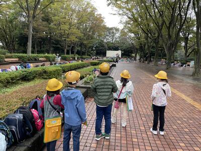 常夜灯公園で自由散策。これで今日の校外学習は終わりです。