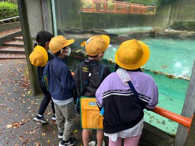 市川市役所、やぶしらず、梨街道を車窓から見学し、市川市動植物園に到着しました。子供達はグループに分かれて園内を自由にまわっています。