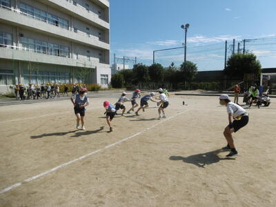 スポーツの秋!6年生では、体育学習で「フラッグフットボール」に取り組んでいます。「フラッグフットボールとは、「タグラグビー」に、アメリカンフットボールの要素を取り入れたニュースポーツであり、平成29年度改訂の小学校学習指導要領でも新たに紹介されています。このスポーツの大きな魅力(運動の特性)は、「戦略性」です。「ラグビーボールをいかにして敵陣地に運ぶか」について、相手チームの戦力や特色、ゲーム状況などを加味しながら、自分たちの作戦を組み立てて戦います。子どもたちは、ワンプレーごとに大興奮!パスやランなどを組み合わせながら、うまくいけばOK!うまくいかなかった場合は、新たにチーム内で相談し戦略を練り直します。もちろん、「OK!」「やったね!」「ドンマイ!」「大丈夫、大丈夫!」など、笑顔で互いのプレーを認め合い、励まし合っています!さすが、「あったかはあと」な最高学年です!