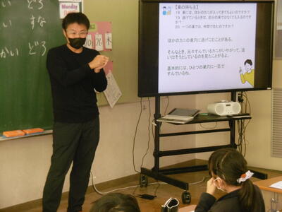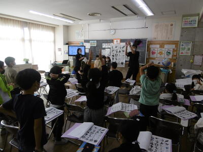 3・4年生では外国語活動、5・6年生では外国語(英語)を学習しています。どちらも、担任と一緒に外国語活動指導員の中村先生が指導してくださいます。10月は、「ハロウィン」を題材にした「英単語おはじきゲーム」をしたり、英語でアニマル・ソングを歌ったり、あいさつをしたりしながら、みんなで楽しく英語に親しんでいます。外国の文化に触れながら異文化理解を図るとともに、外国語(英語)による言語活動(聞く・話す・読む・書く)を通して、外国語(英語)を用いたコミュニケーションの素地となる資質や能力を育成しています。