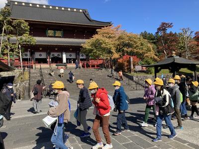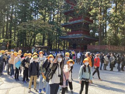 日光杉並木から神橋を経て、無事、輪王寺に到着しました。境内の紅葉が見事です。これから、東照宮を見学します。おかげさまで、妙典っ子は、ますますパワー全開です!
