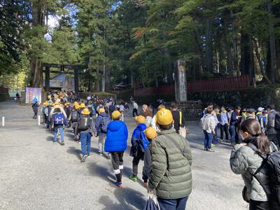 秋の陽に輝く荘厳な陽明門、仲良く並んだ三猿、意外に小さかった眠り猫、微かに響いた鳴龍…。200段の階段を登り、家康のお墓も見学し、日光の歴史と文化にたっぷり触れることができました。これから、いろは坂から中禅寺湖に向かいます。おかげさまで、妙典っ子は、知的好奇心もいっぱいです。