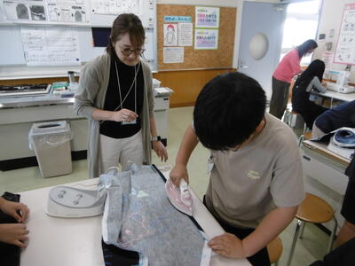 5年生では、家庭科の学習で「生活を豊かにするための布を用いた製作」として、エプロンづくりに取り組んでいます。製作をとおして、手縫いやミシン縫いなど、目的に応じた縫い方や用具の安全な取り扱いについて学びます。大多数の子どもたちは、ミシン縫いはもちろん、本格的な手縫いも初体験です。自分の体の大きさに合わせて、エプロンの丈を縫う位置を決めて、手縫いやミシ縫いにチャレンジ!最初こそ、かなり手間取っていましたが、「お手伝いボランティア」の保護者の方々が、一人一人を丁寧にサポートしてくださったおかげで、ミシン縫いにも少しずつ慣れ、楽しく取り組んでいます。子どもたちの力作が完成するのが楽しみです!ご多用の中、サポートをしていただいた保護者の皆様、ありがとうございました。