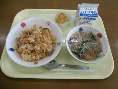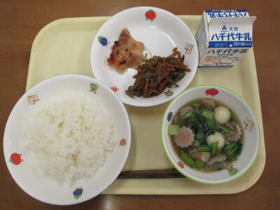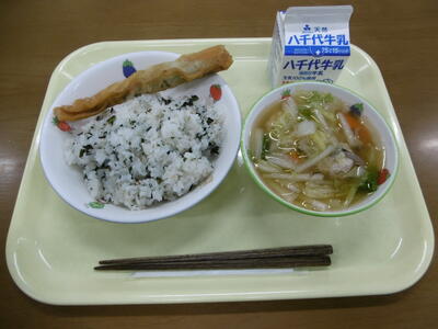 ・牛乳 ・わかめごはん ・ししゃものパリパリ揚げ ・豆腐団子スープ