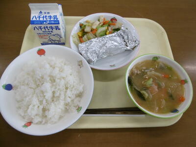 ・牛乳 ・ごはん ・まつかぜ焼き ・紅白なます ・八宝味噌汁