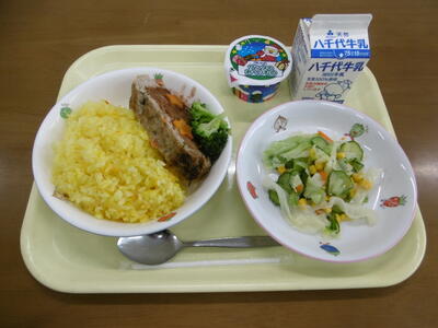 ・牛乳 ・サフランライス ・ミートローフ ・フレンチサラダ ・クリスマスチョコムース