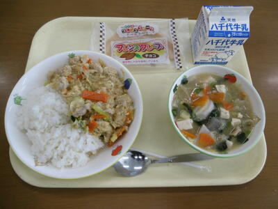 ・牛乳 ・キーマカレー ・ひじきのマリネ ・フルーツヨーグルト