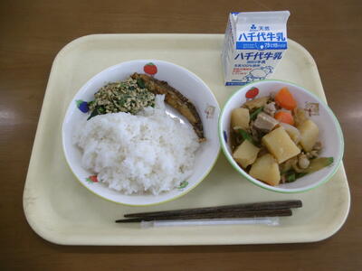 ・牛乳 ・ごはん ・スタミナ納豆 ・ししゃものカレー揚げ ・肉じゃが