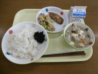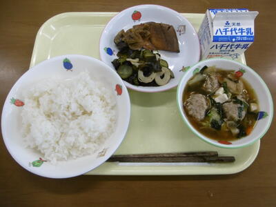・牛乳 ・さばの甘露煮 ・竹輪ときゅうりの酢の物 ・ちゃんこ汁