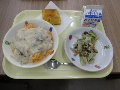 ・牛乳 ・じゃこガーリックごはん ・豆腐のツナグラタン ・春雨スープ ・りんご