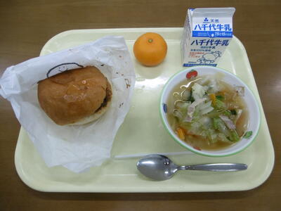 ・牛乳 ・コロッケバーガー ・ABCスープ ・みかん