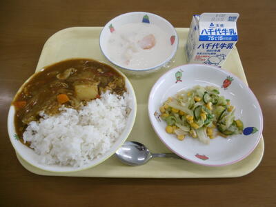 ・牛乳 ・ポークカレー ・麦ごはん ・コーンサラダ ・フルーツヨーグルト