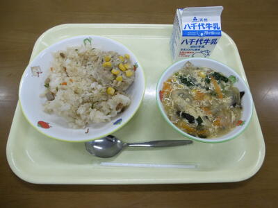 ・牛乳 ・チャーハン ・手作りシューマイ ・中華風卵入りコーンスープ