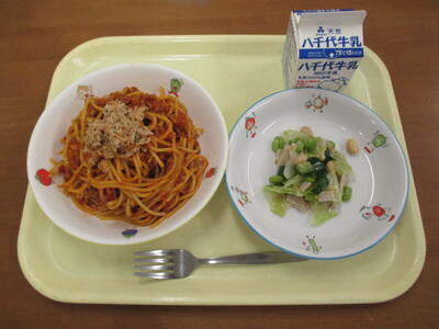 ・牛乳 ・ツナとトマトのスパゲッティ ・親子豆サラダ