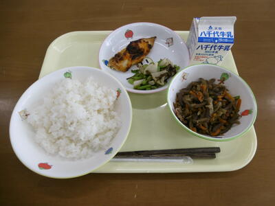 ・牛乳 鰆のもみじ焼き ・五目きんぴら ・株の浅漬け