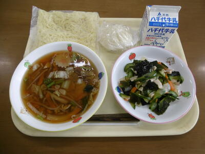 ・牛乳 天の川の醤油ラーメン ・千葉ポーク饅 ・わかめとこんにゃくのサラダ