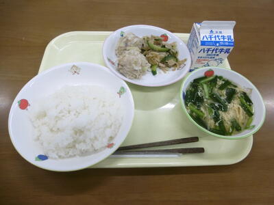 ・牛乳 ・ごはん ・はなシュウマイ ・切干大根の中華和え ・にら玉汁